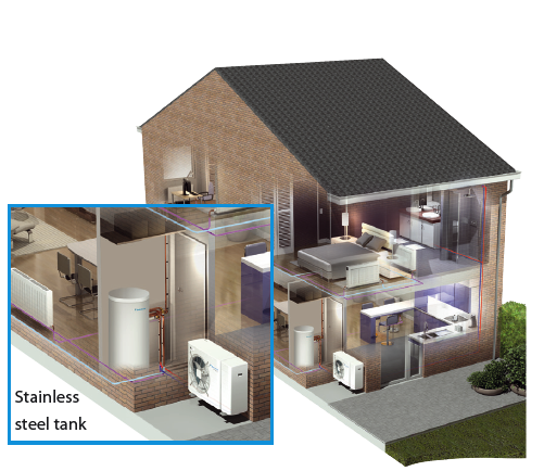 › Combine with a stainless steel tank for domestic hot water